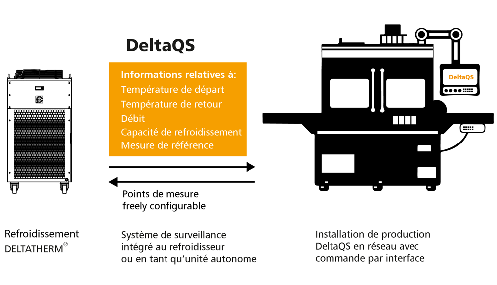 Le système de surveillance DeltaQS de DELTATHERM® est disponible en tant qu’appareil individuel ou peut être intégré directement dans le refroidisseur.
