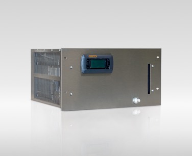Rack Chiller im Leistungsbereich von 0,15 bis 3 kW als kompressorbetriebene Kühlanlage mit Tank und Pumpe; bis 10 kW als Wärmetauchereinheit.