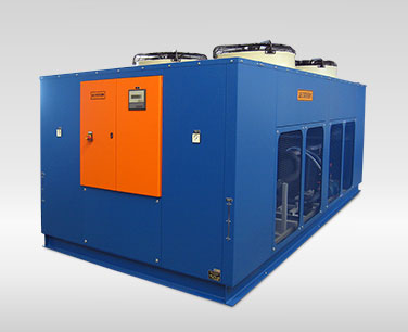 Kompressorbetriebene Kühlanlagen im Leistungsbereich von 150 kW bis 5.000 kW mit Tank und Pumpe als komplette Unit.
