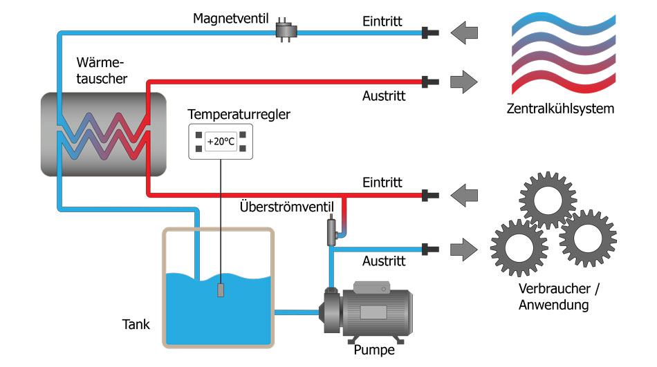 Auch andere Medien als Wasser (Säure, Lauge, Öl, DI-Wasser etc.) können auf diese Weise gekühlt werden.